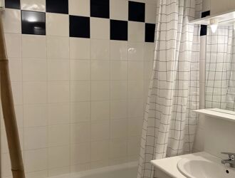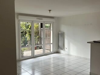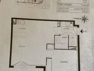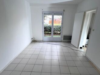 T2 en rez-de-jardin comprenant : entrée avec placard, séjour avec cuisine aménagée ouverte, une chambre avec placard, une salle de bains, un WC.