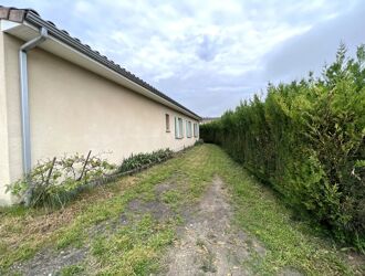 Maison mitoyenne sur un côté comprenant une entrée, un séjour, une cuisine, un wc; à l'étage un palier desservant 3 chambres, une sdb, une sde communiquante entre 2 chambres, un wc.