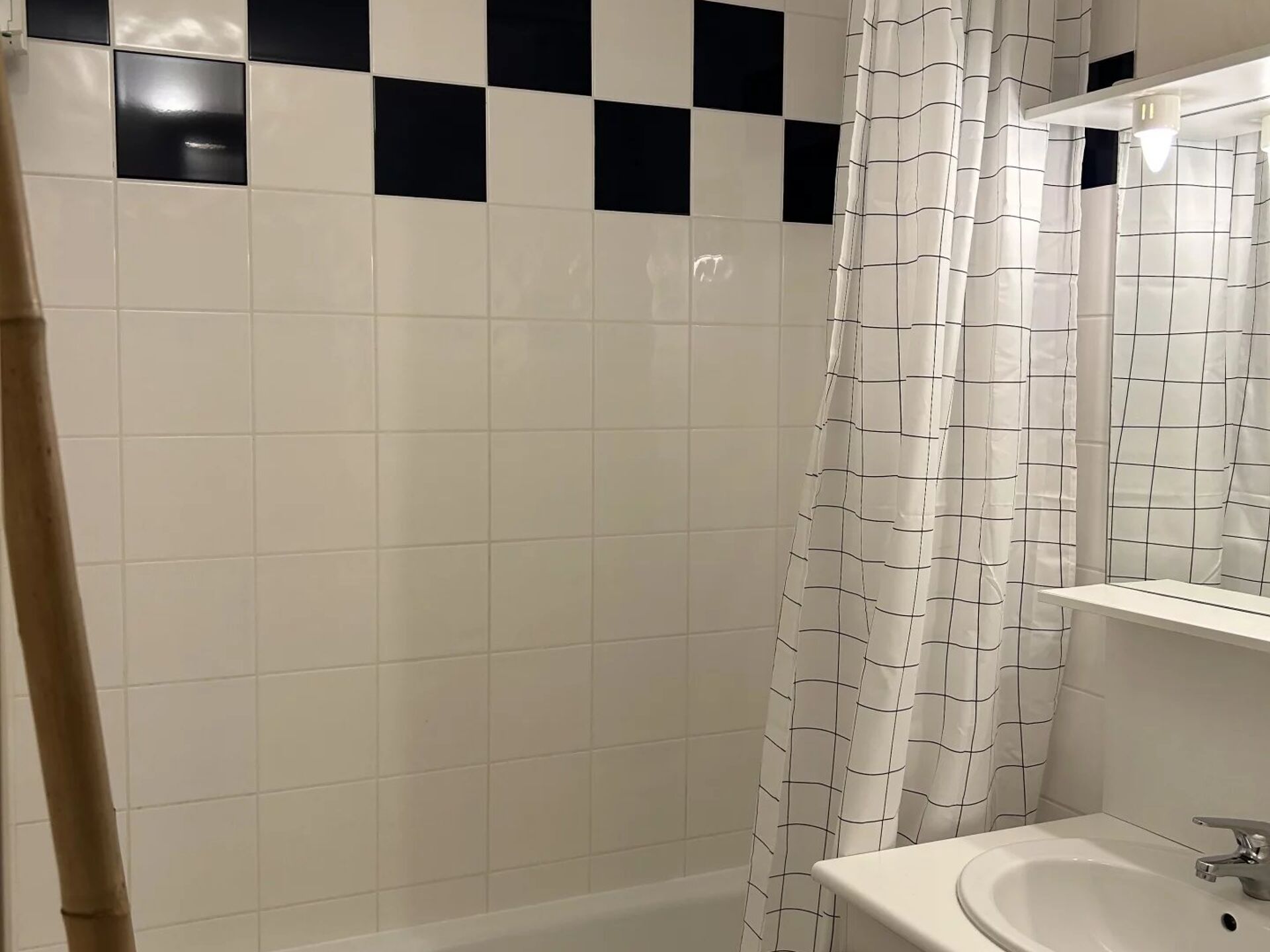 T2 en rez-de-jardin comprenant : entrée avec placard, séjour avec cuisine aménagée ouverte, une chambre avec placard, une salle de bains, un WC.