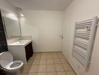 Maison avec cour dans le centre de Saint Laurent comprenant une cuisine, un salon/séjour, une salle d'eau, un wc et à l'étage deux grandes chambres.